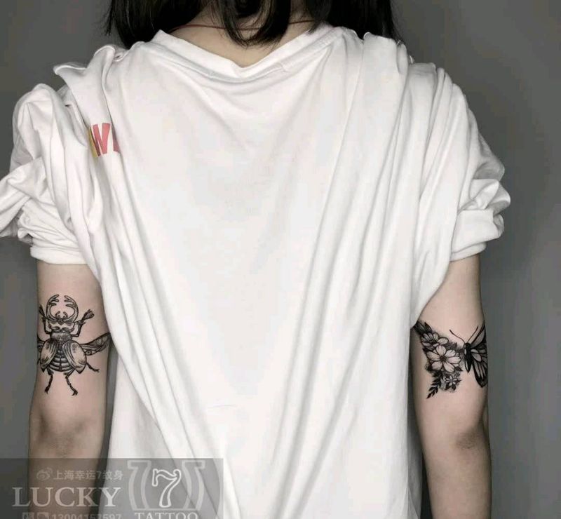 点刺|甲壳虫&蝴蝶|幸运7纹身纹身图片_手臂点刺纹身图案