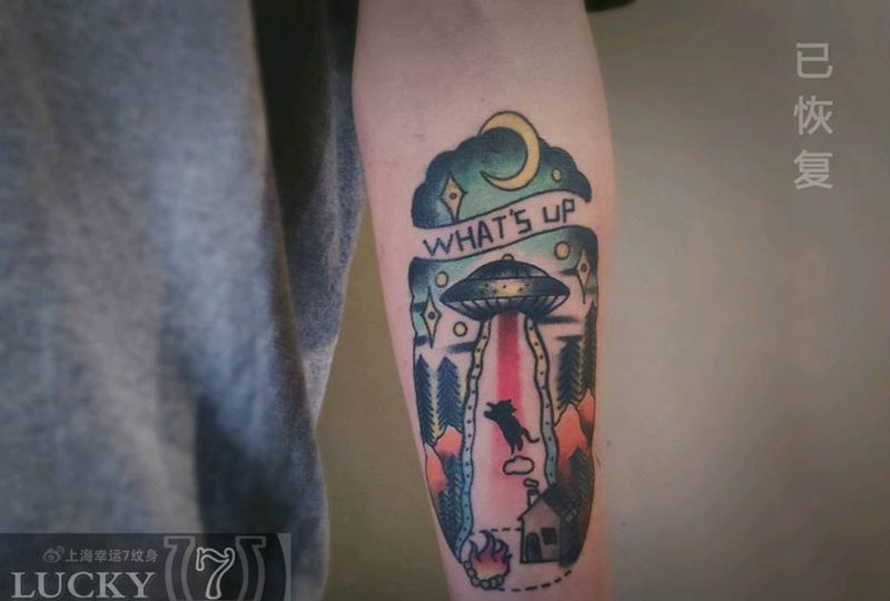 UFO飞碟|幸运7纹身纹身图片_手臂Old School纹身图案