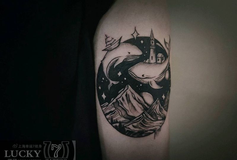 点刺鲸鱼|幸运7纹身纹身图片_手臂点刺纹身图案