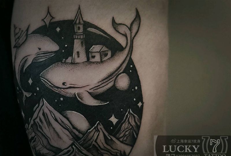 点刺鲸鱼|幸运7纹身纹身图片_手臂点刺纹身图案