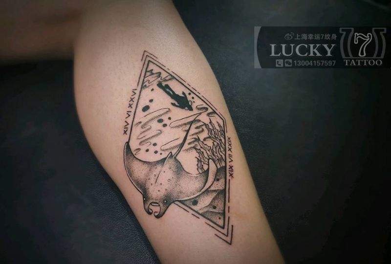 点刺|幸运7纹身纹身图片_点刺小腿纹身图案