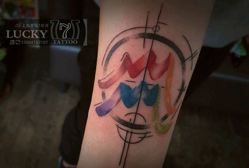 星座|水瓶座|幸运7纹身纹身图片_手臂水彩纹身图案