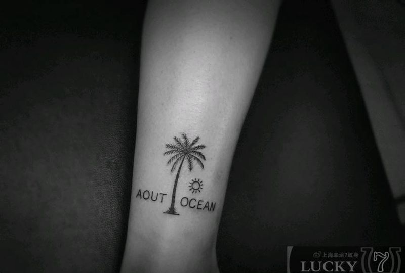 小树|幸运7纹身纹身图片_脚踝小清新纹身图案