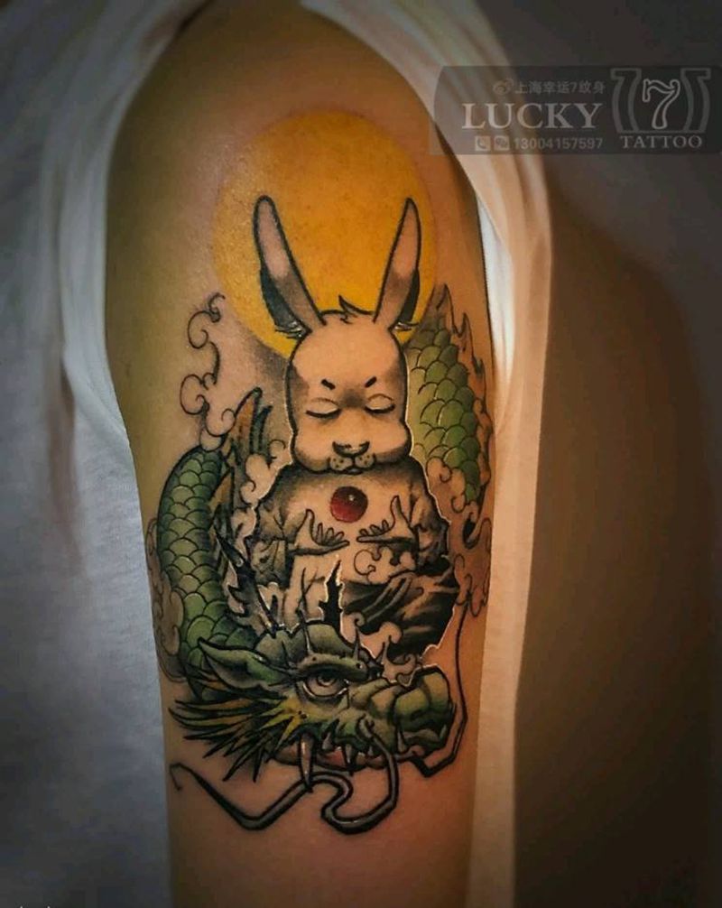 兔子&龙|幸运7纹身纹身图片_手臂New School纹身图案