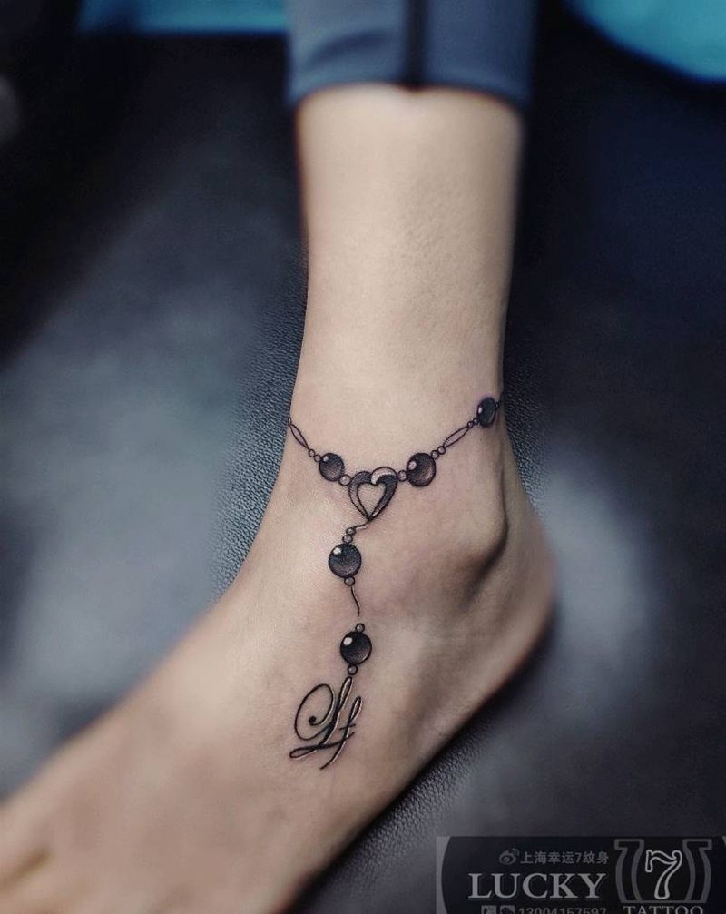 字母吊坠脚链|幸运7纹身纹身图片_脚踝清新纹身图案