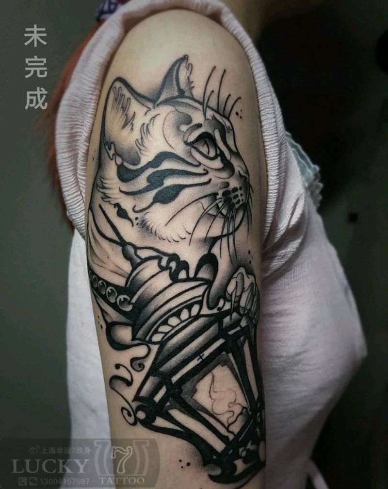 猫(未完成)|幸运7纹身纹身图片_手臂New School未完成纹身图案