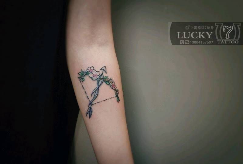 射手座|花弓|幸运7纹身纹身图片_手臂清新纹身图案