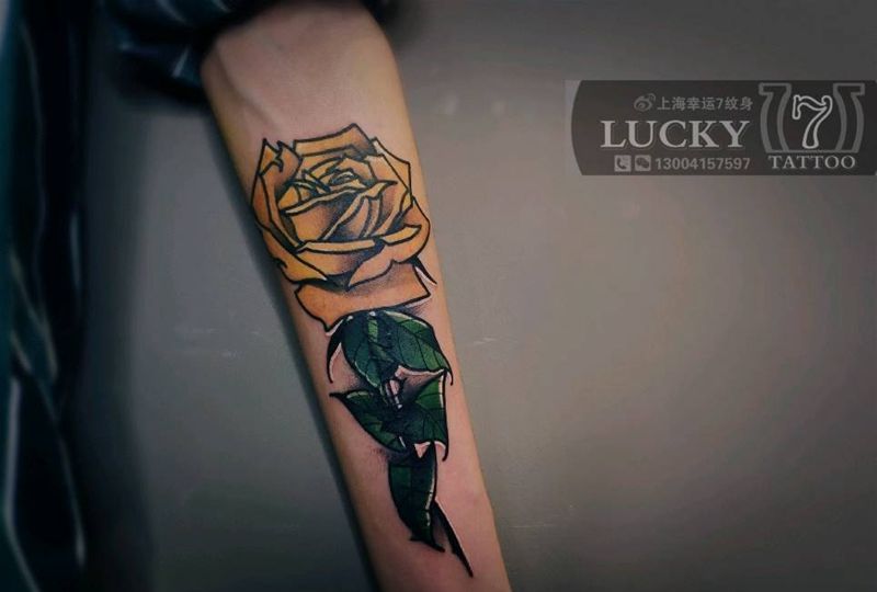 遮盖|玫瑰|幸运7纹身纹身图片_手臂New School盖图纹身图案