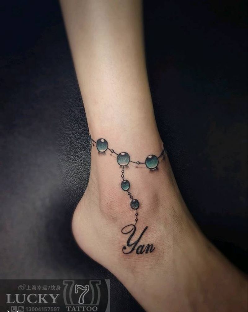字母脚链|幸运7纹身纹身图片_脚踝纹身图案
