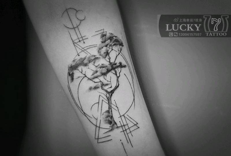 清新小树|幸运7纹身纹身图片_手臂几何小清新纹身图案