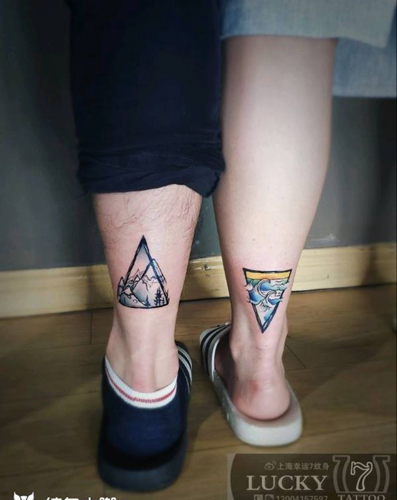情侣纹身|水彩山水|幸运7纹身纹身图片_腿部水彩水墨情侣纹身图案