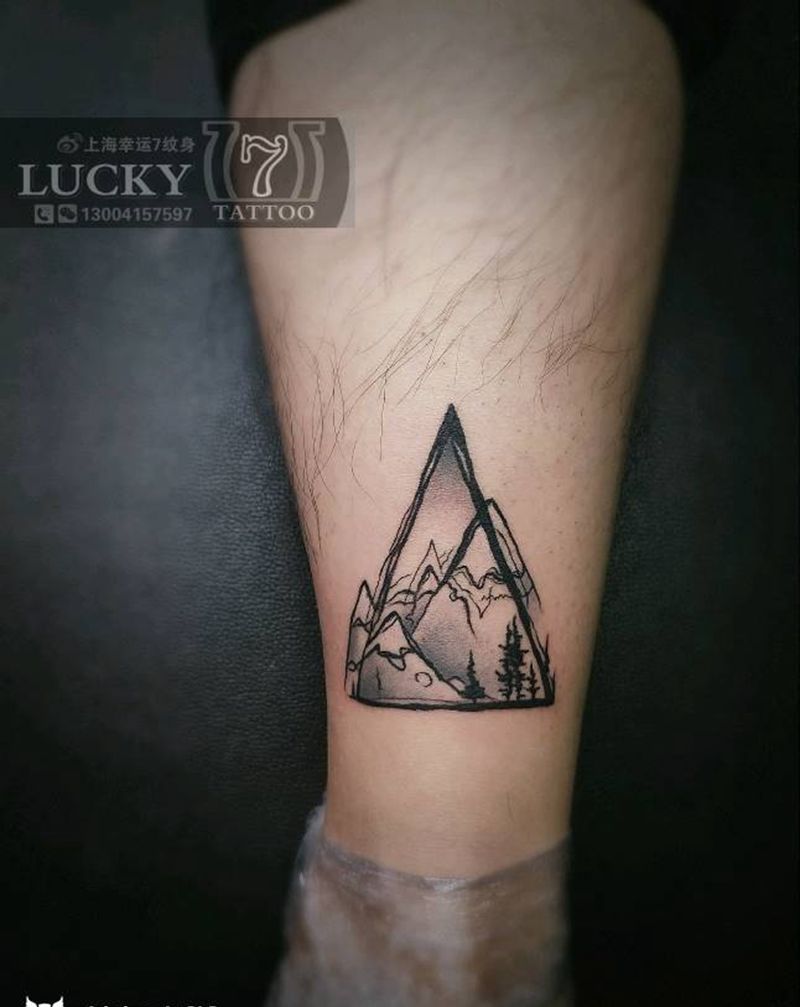 情侣纹身|水彩山水|幸运7纹身纹身图片_腿部水彩水墨情侣纹身图案