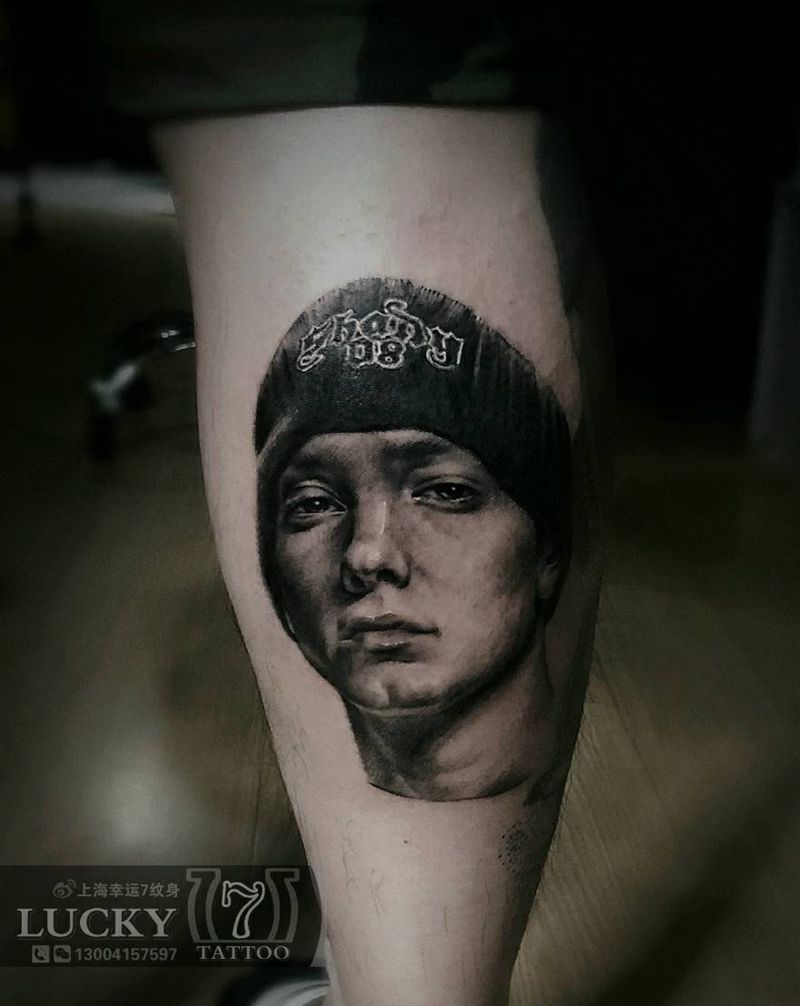 当前位置: 首页 >上海市纹身店-幸运7纹身Lucky7tattoo纹身图案>写实肖像|幸运7纹身纹身图片_欧美写实小腿纹身图案