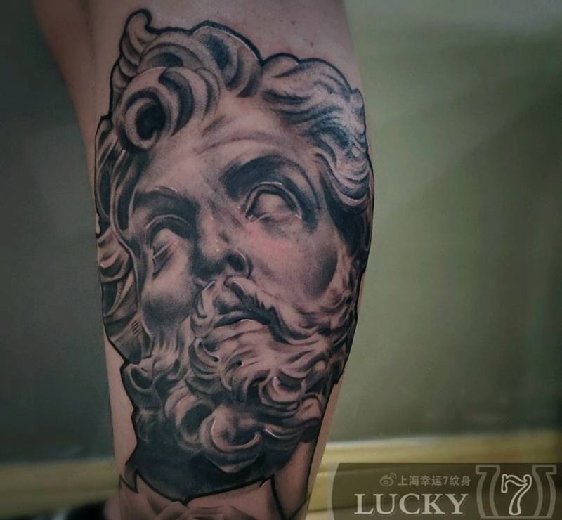 黑灰石膏像|幸运7纹身纹身图片_欧美写实小腿纹身图案