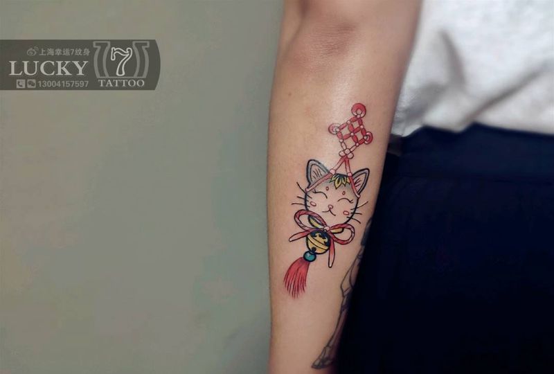 小猫|幸运7纹身纹身图片_手臂New School纹身图案