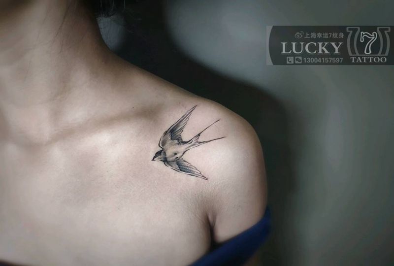 燕子|幸运7纹身纹身图片_锁骨清新纹身图案