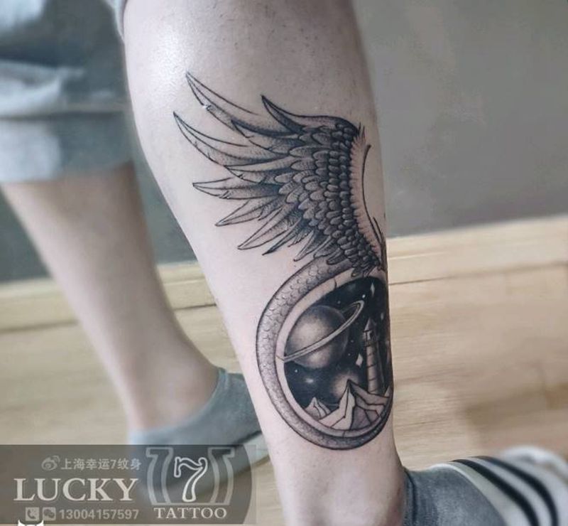星空|衔尾蛇|幸运7纹身纹身图片_小腿纹身图案