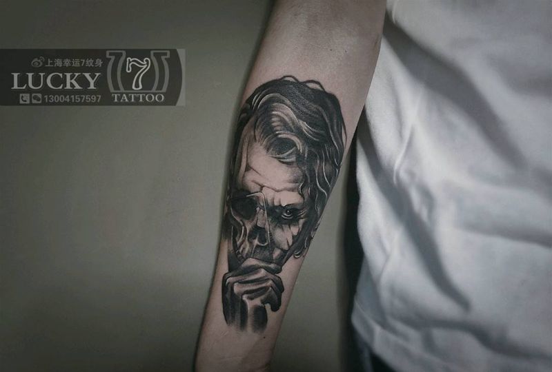 暗黑小丑|幸运7纹身纹身图片_小臂暗黑黑灰纹身图案