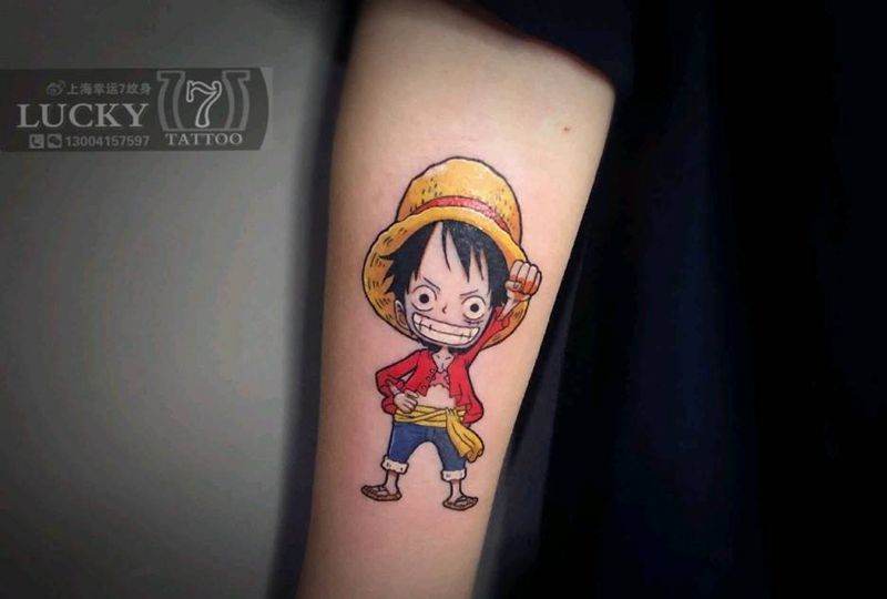 海贼王|路飞|幸运7纹身纹身图片_手臂动漫纹身图案