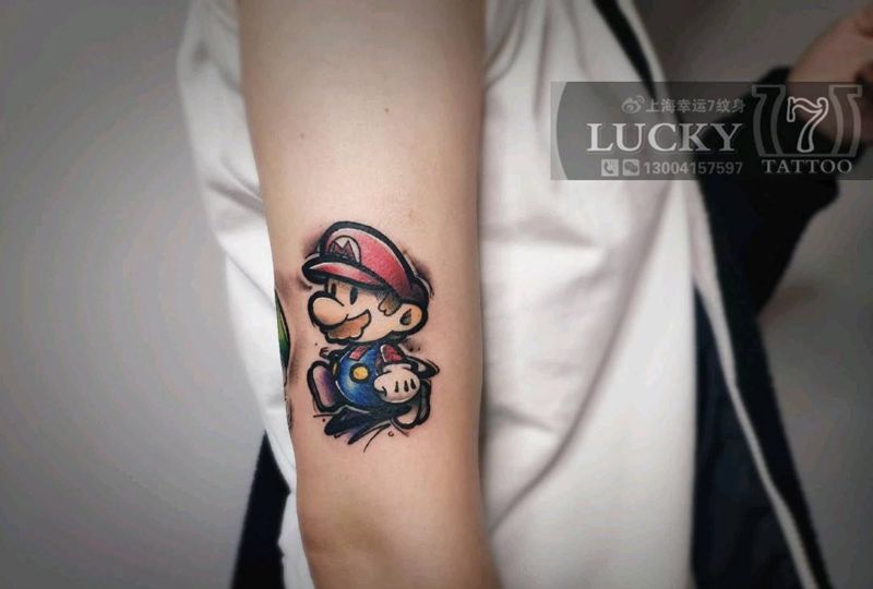 卡通|马里奥|幸运7纹身纹身图片_手臂New School卡通纹身图案