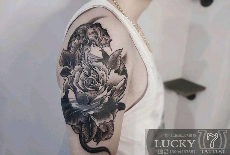 遮盖|暗黑玫瑰蛇|幸运7纹身纹身图片_手臂遮盖暗黑纹身图案