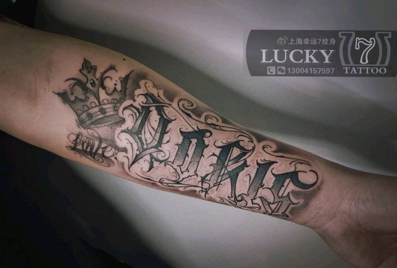 皇冠|奇卡诺花体字|幸运7纹身纹身图片_手臂花体字纹身图案