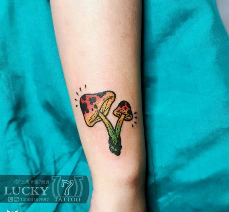 牙买加小蘑菇|幸运7纹身纹身图片_Old School手腕纹身图案