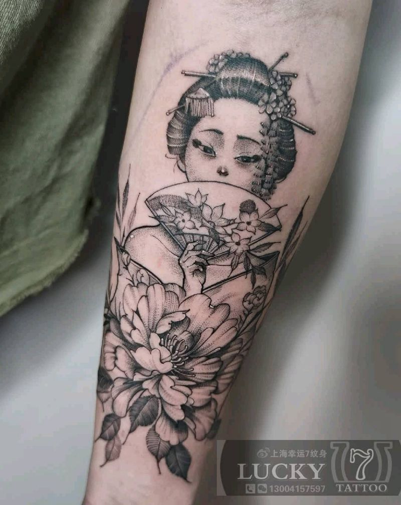 艺伎|幸运7纹身纹身图片_手臂点刺清新纹身图案