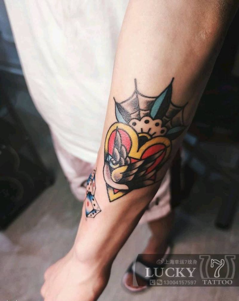 骰子|燕子|幸运7纹身纹身图片_手臂Old School纹身图案