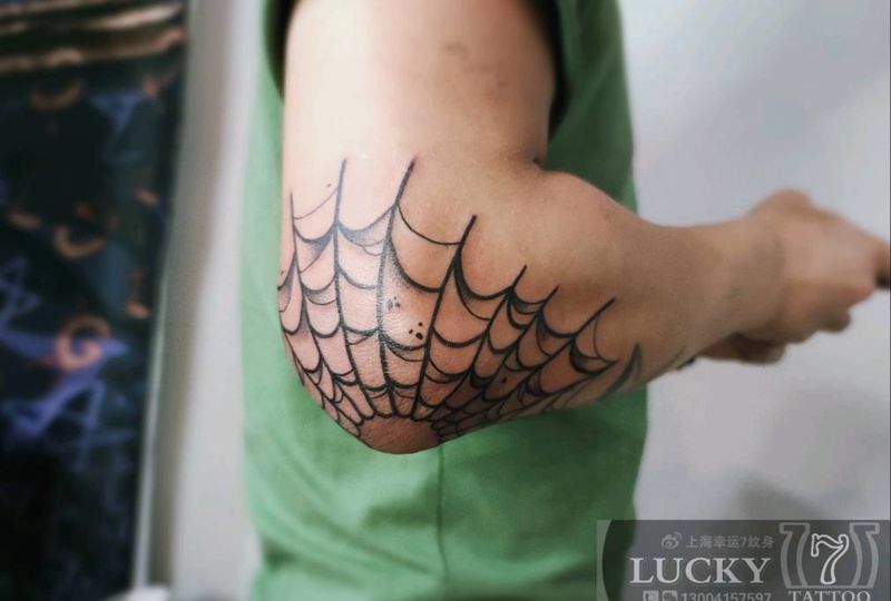 蜘蛛网|幸运7纹身纹身图片_Old School手肘纹身图案