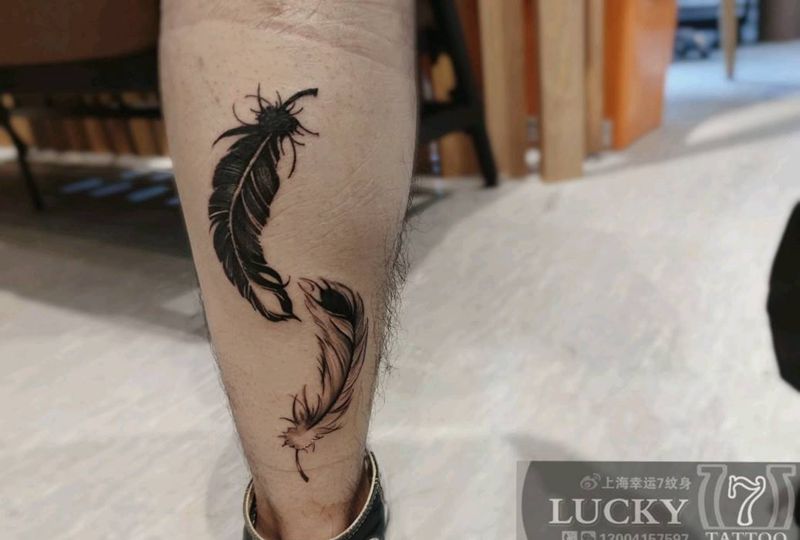 羽毛|幸运7纹身纹身图片_小腿纹身图案