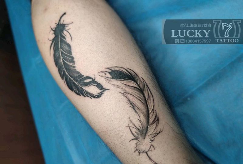 羽毛|幸运7纹身纹身图片_小腿纹身图案
