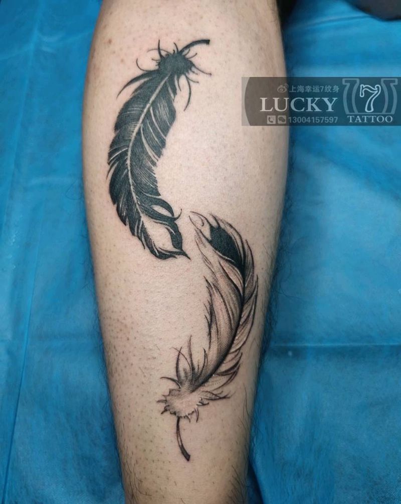 羽毛|幸运7纹身纹身图片_小腿纹身图案
