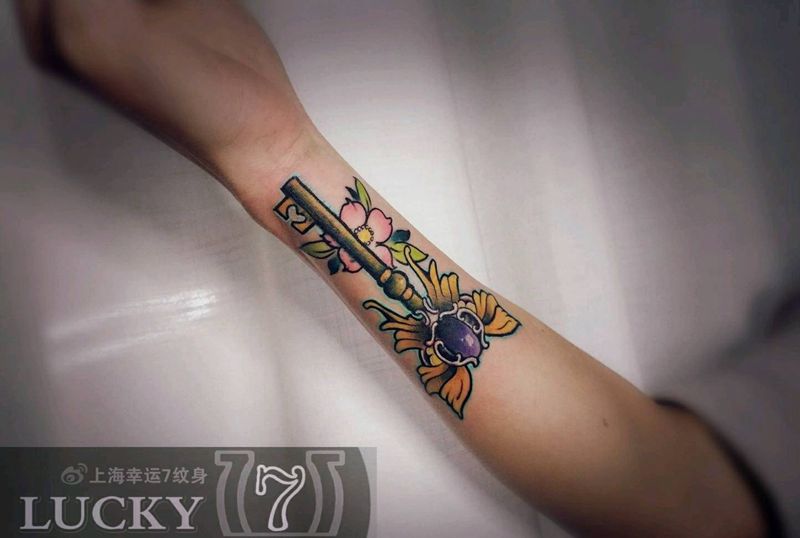 遮盖|金钥匙|幸运7纹身纹身图片_手臂New School盖图纹身图案