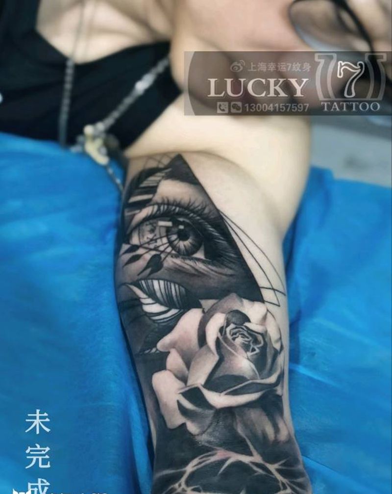 未完成|黑灰包臂|幸运7纹身纹身图片_手臂欧美写实未完成纹身图案