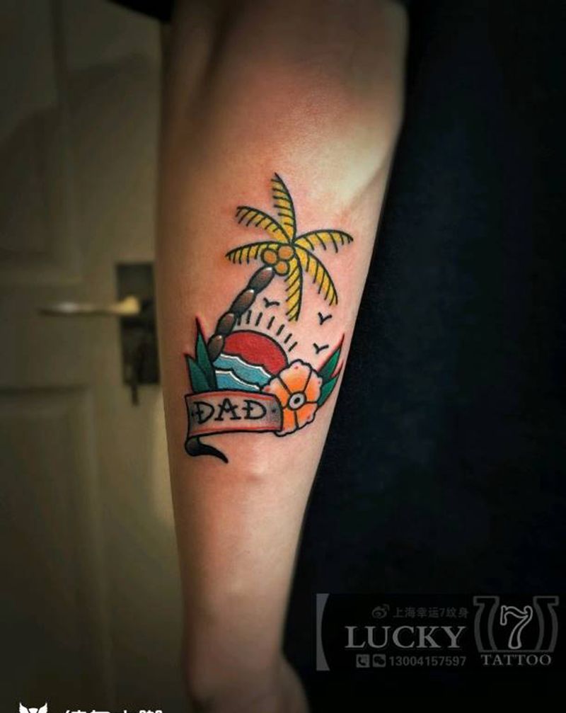 椰树|幸运7纹身纹身图片_手臂Old School纹身图案