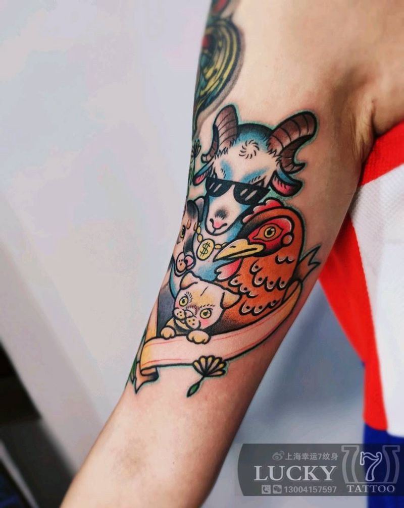 当前位置: 首页 >上海市纹身店-幸运7纹身Lucky7tattoo纹身图案>生肖全家福|幸运7纹身纹身图片_手臂Old School纹身图案