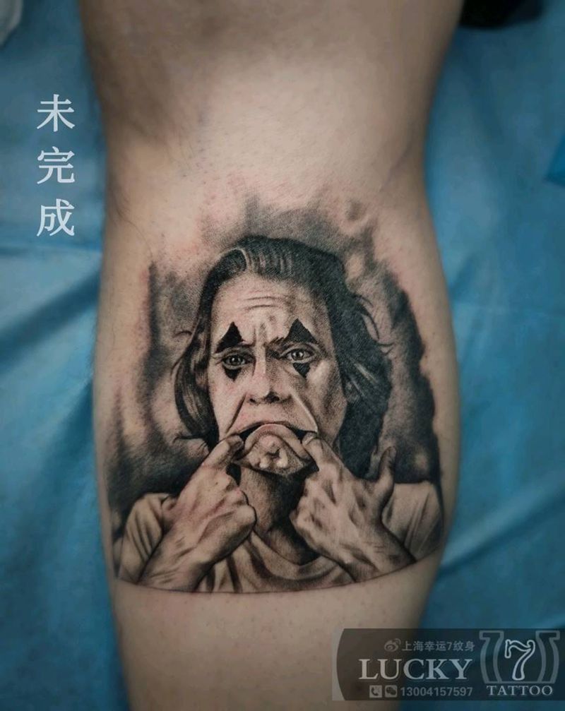 小丑|幸运7纹身纹身图片_欧美写实小腿未完成纹身图案