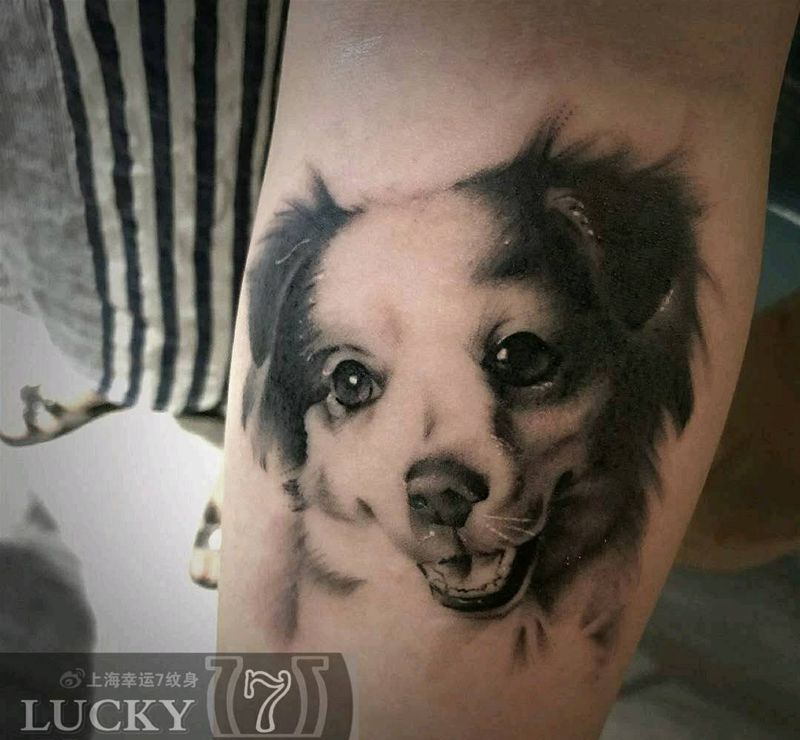 小狗头像|幸运7纹身纹身图片_手臂欧美写实纹身图案