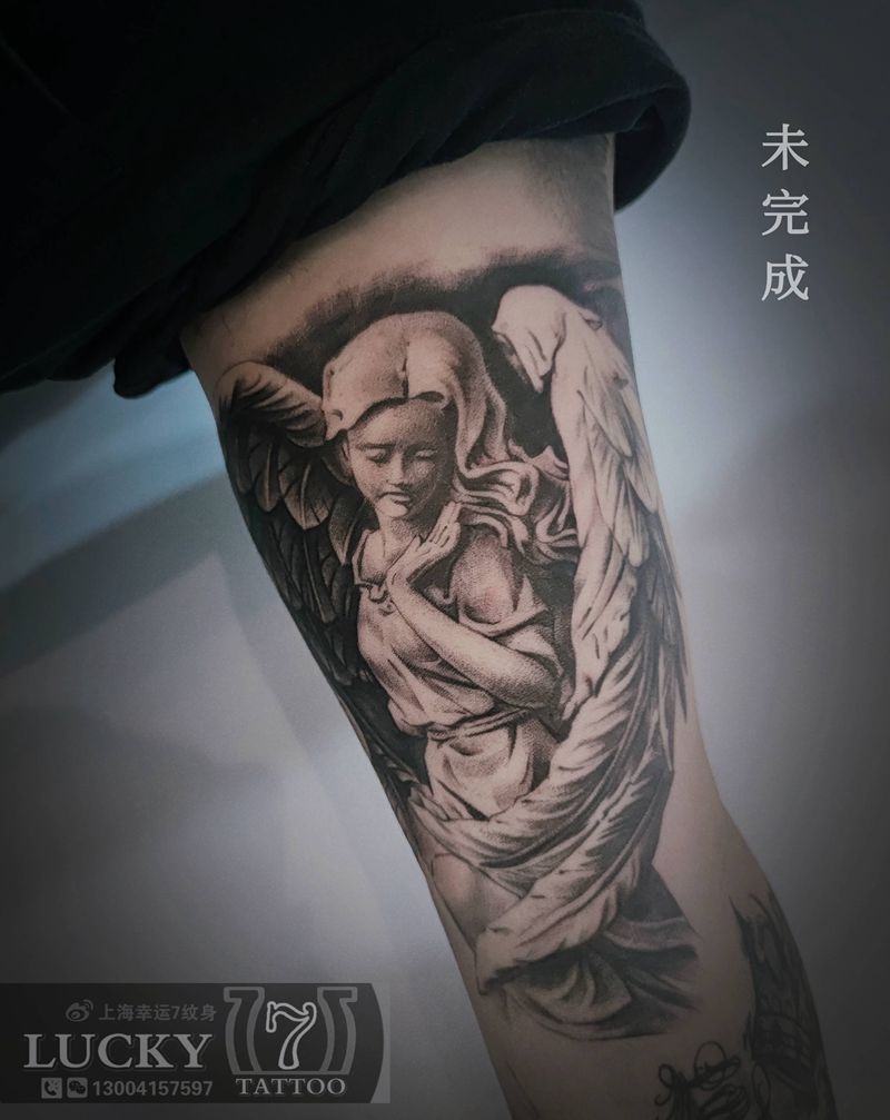 石膏像|守护天使|幸运7纹身纹身图片_手臂欧美写实未完成纹身图案