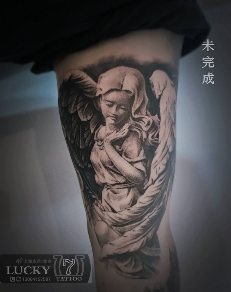 石膏像|守护天使|幸运7纹身纹身图片_手臂欧美写实未完成纹身图案
