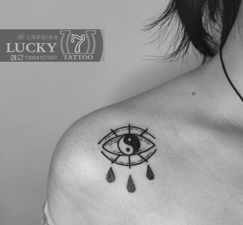 太极眼|幸运7纹身纹身图片_肩部图腾纹身图案