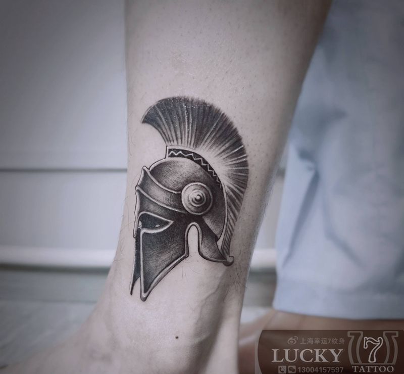 头盔|幸运7纹身纹身图片_欧美写实脚踝纹身图案