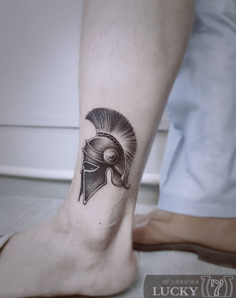 头盔|幸运7纹身纹身图片_欧美写实脚踝纹身图案