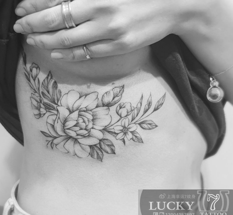 素花|幸运7纹身纹身图片_胸下清新纹身图案