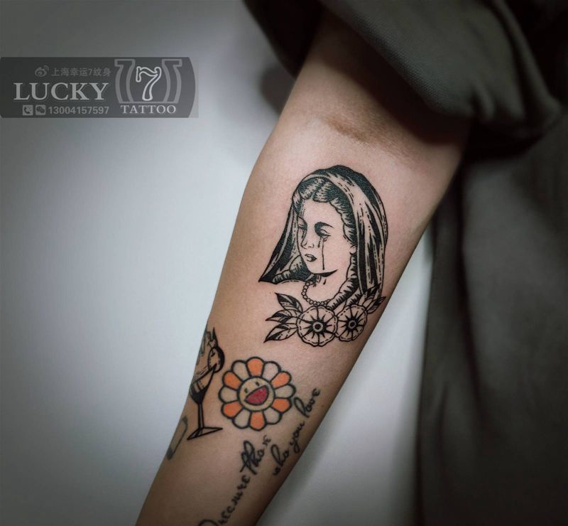 圣母|酒杯|幸运7纹身纹身图片_手臂Old School纹身图案