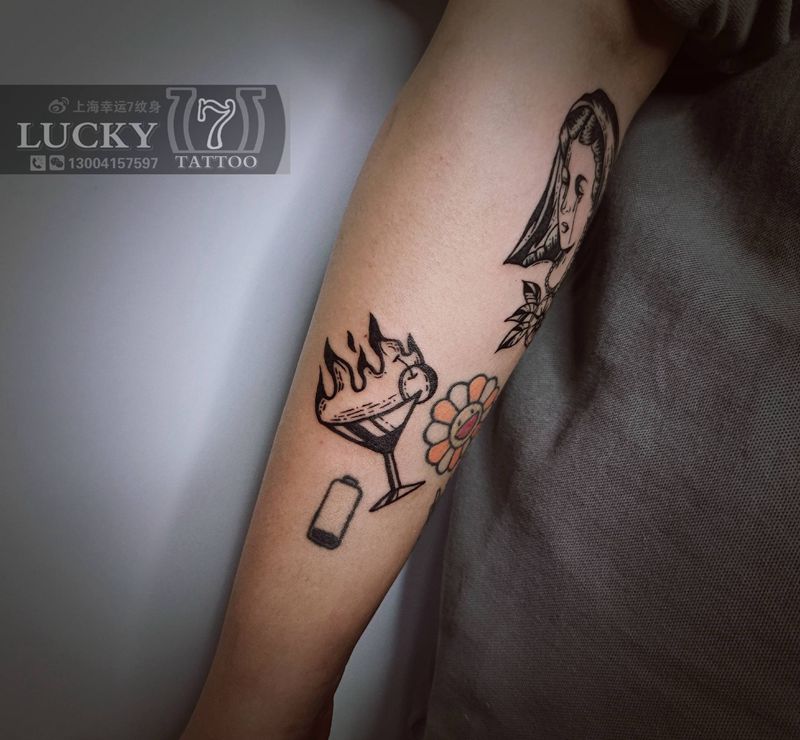 圣母|酒杯|幸运7纹身纹身图片_手臂Old School纹身图案
