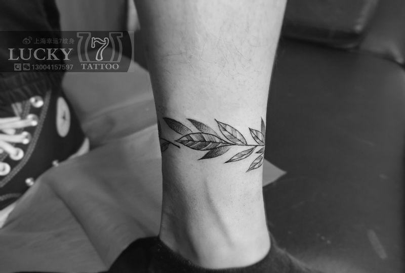 枝叶脚环|幸运7纹身纹身图片_脚踝清新纹身图案