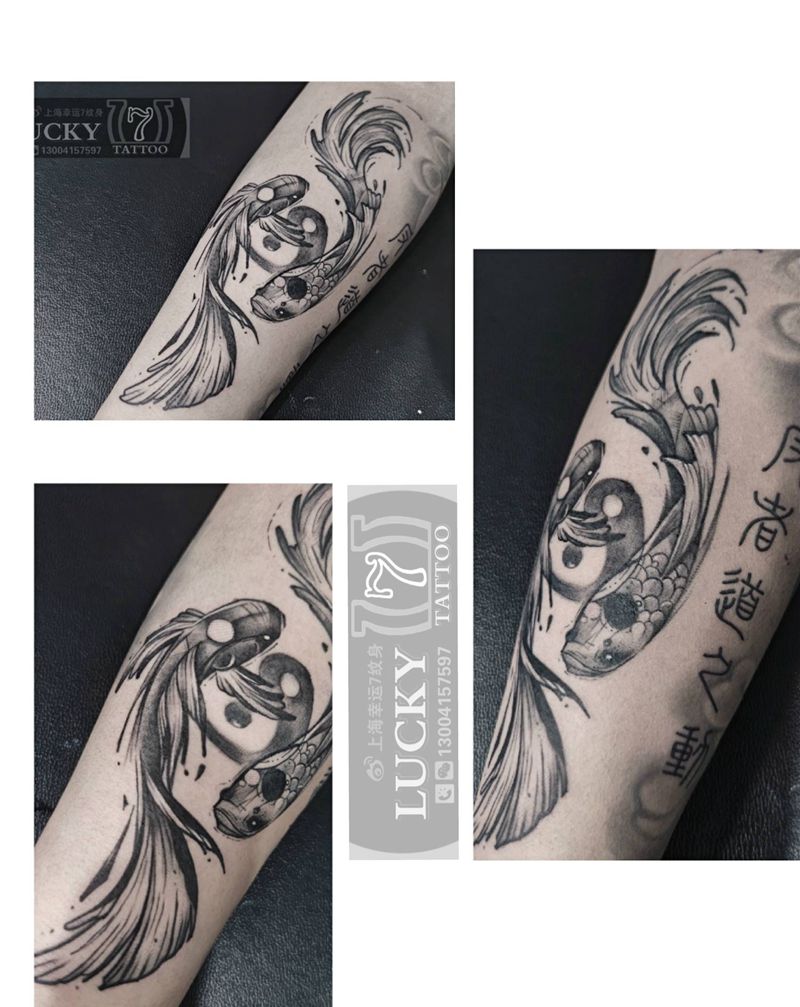 太极阴阳鱼|水墨|幸运7纹身纹身图片_手臂水墨纹身图案