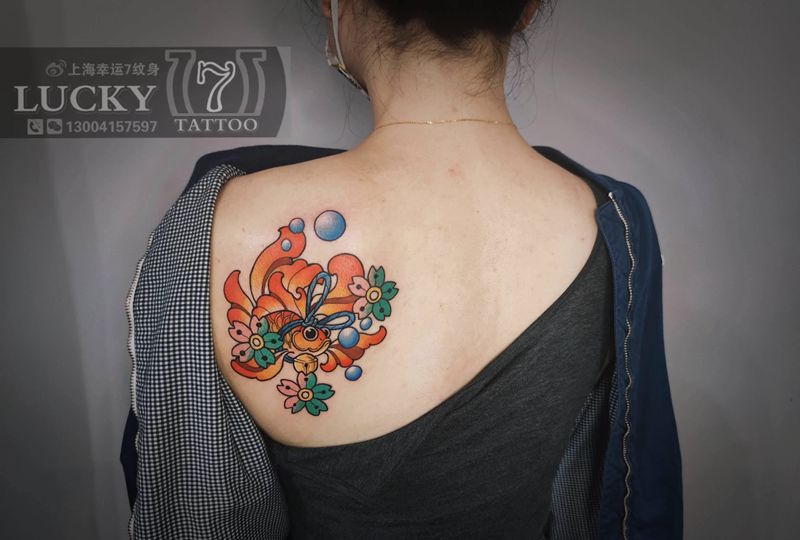 小金鱼|幸运7纹身纹身图片_肩部New School纹身图案